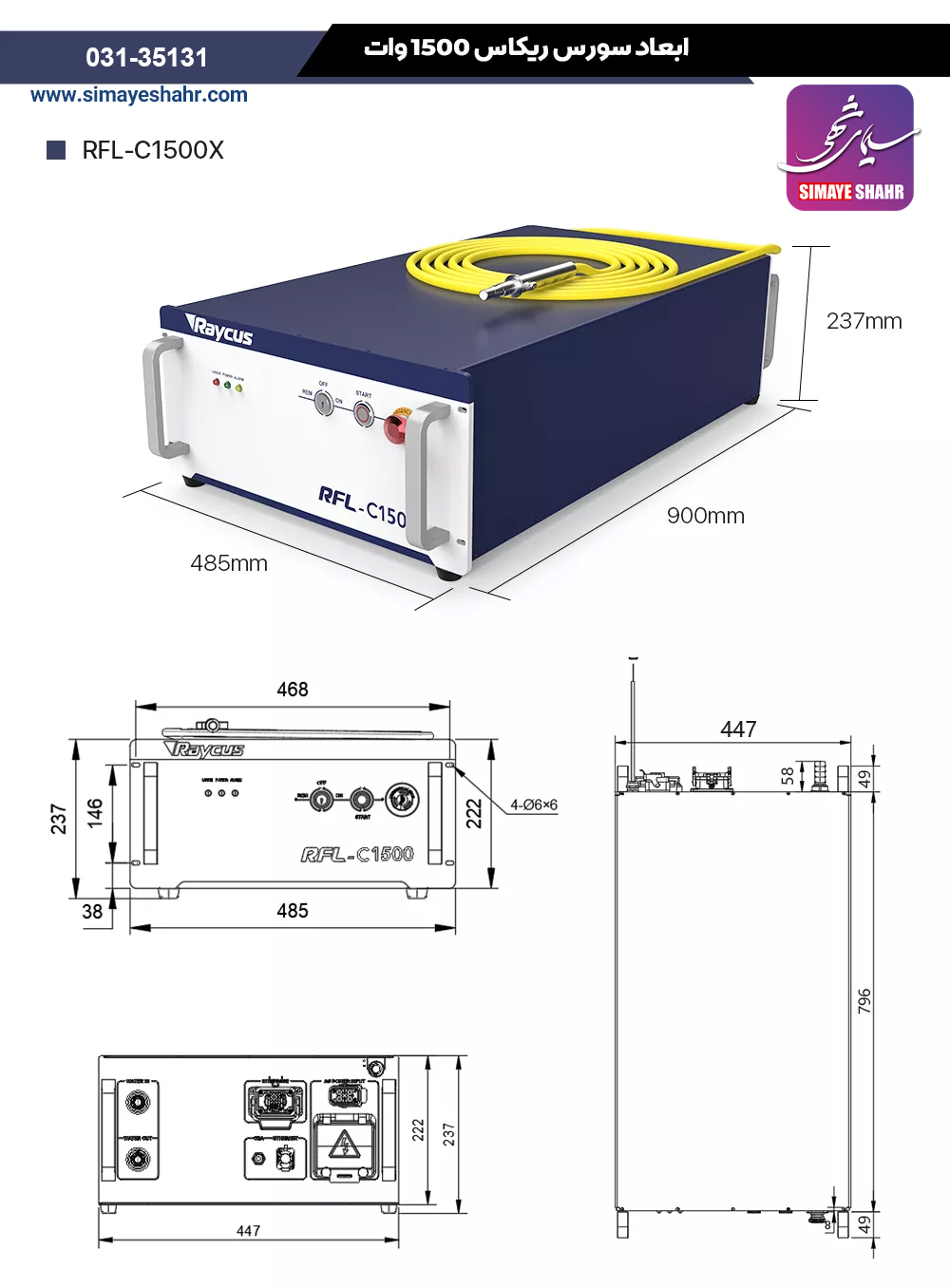 ابعاد سورس دستگاه لیزر فایبر با توان 1500 وات