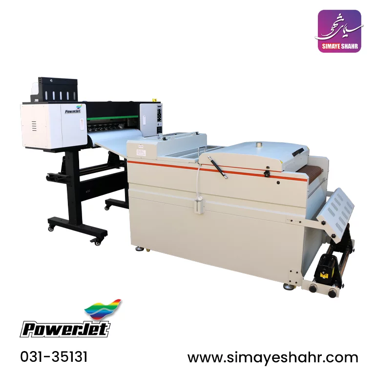 دستگاه DTF چاپ را بصورت 5 رنگ یعنی همراه با رنگ سفید انجام می دهد