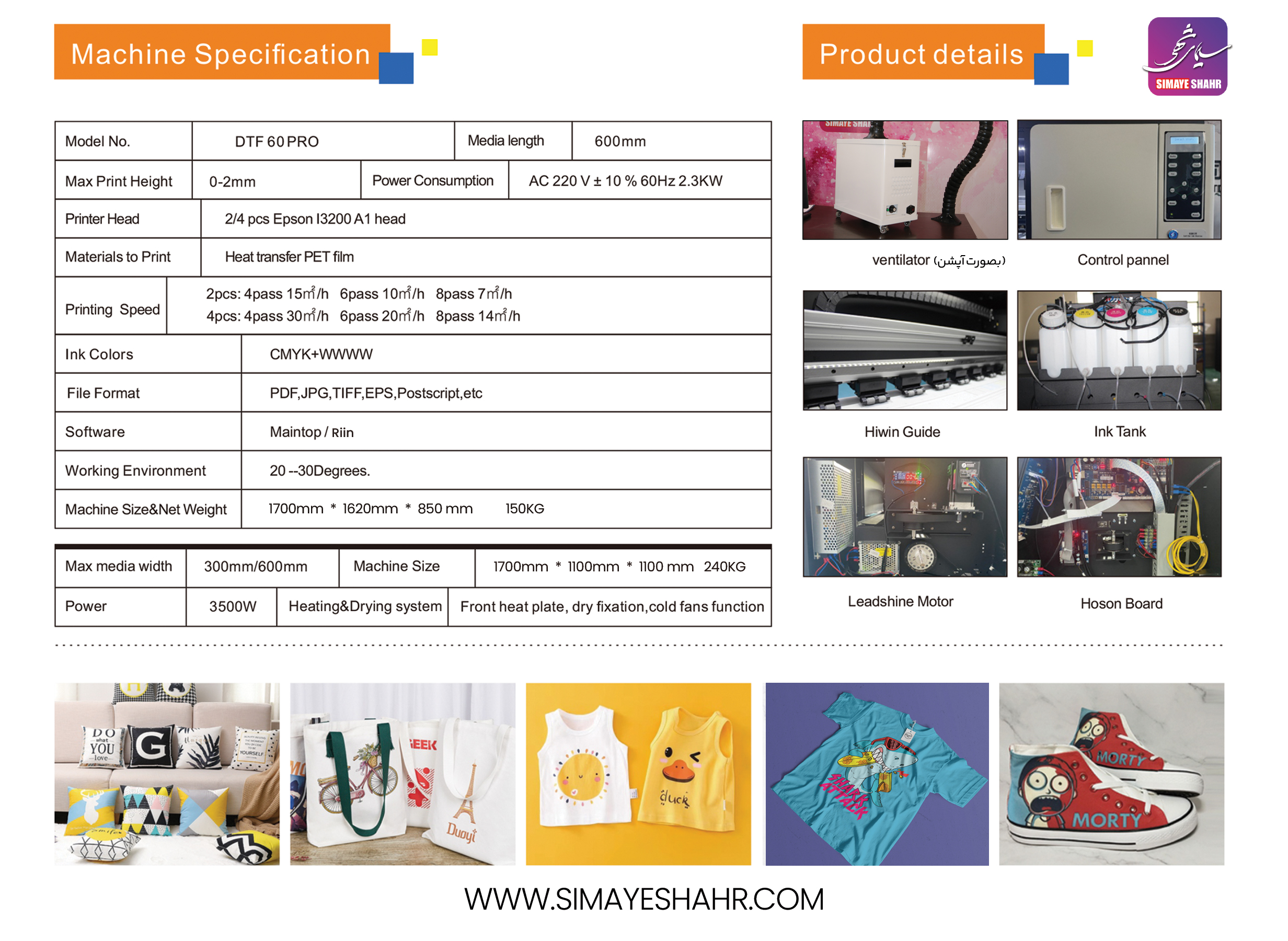 مشخصات دستگاه چاپ DTF